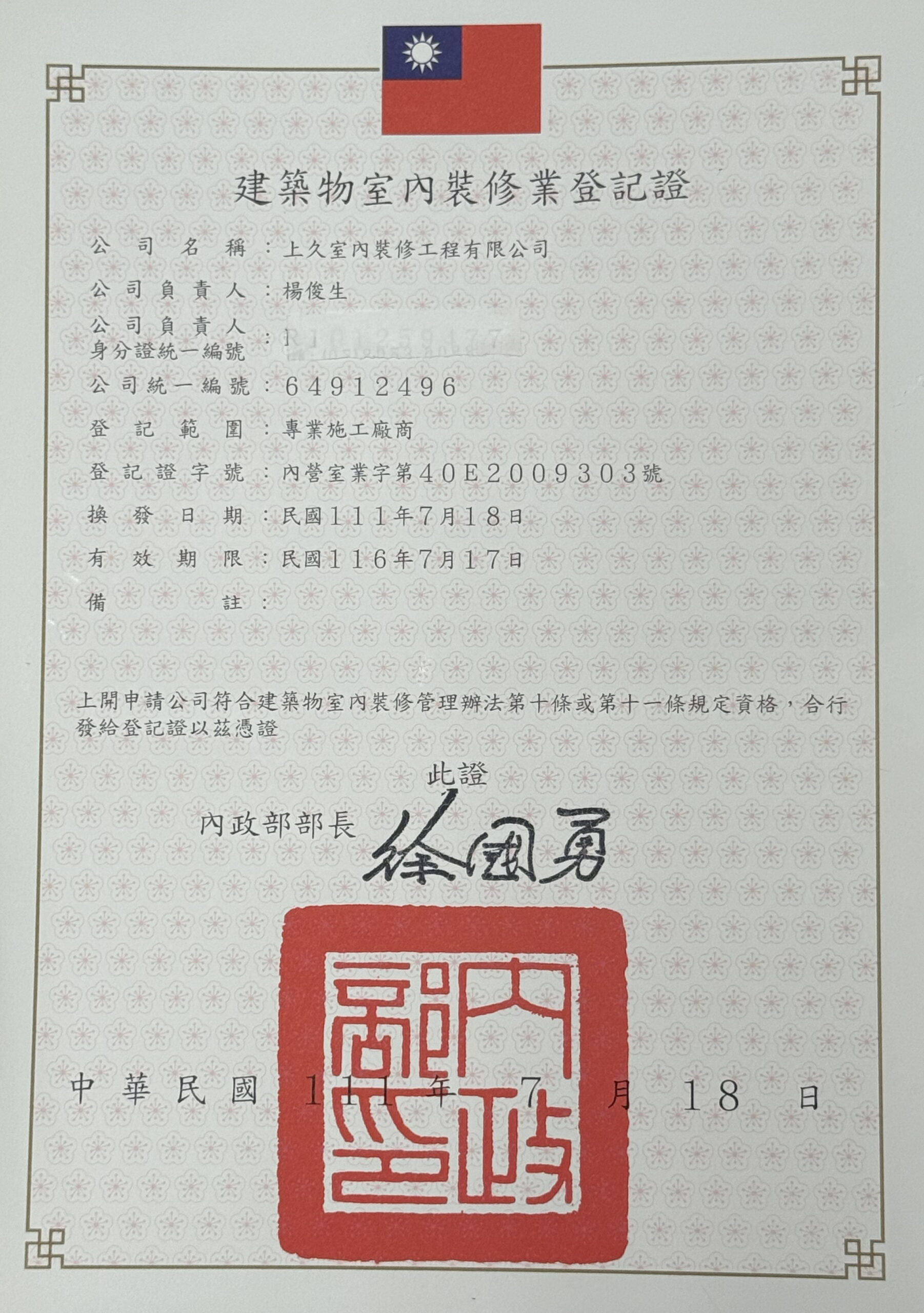 上久房屋修繕工程公司是台南市政府許可認證的專業室內裝修住宅整合修繕工程公司,有一群專業工作團隊以- 專業、技術、品質、服務為宗旨,免費估價 、整合統包施工。
